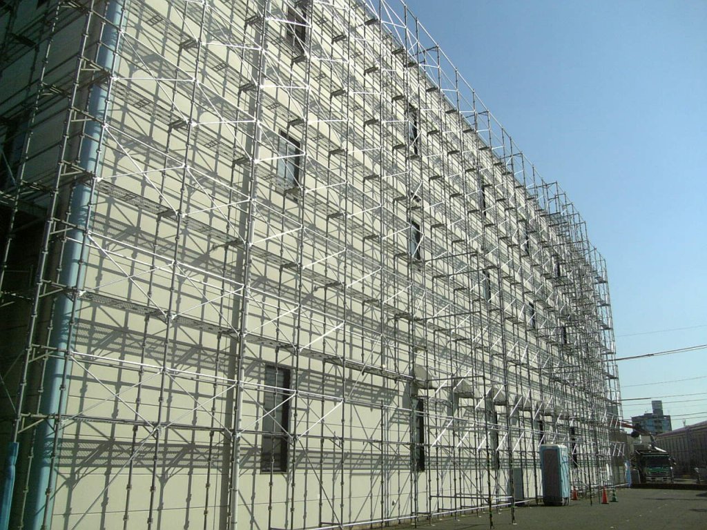 単管足場は、建物の形状に合わせて建地の位置や布の高さを柔軟に設定できます。ただし、組立には手間と時間がかかり、施工精度は職人の技量に大きく依存します。