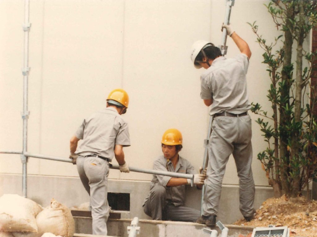 1980年、株式会社大三機工商会(現:株式会社ダイサン)が、日本初となるくさび緊結式足場「ビケ足場」の製造・販売を開始しました。